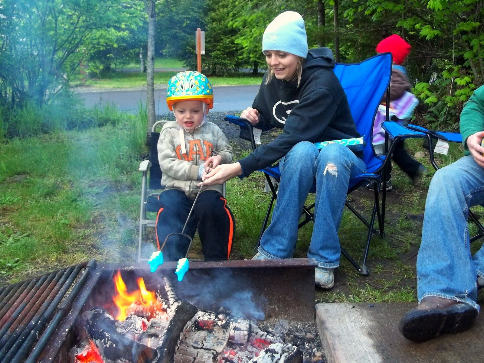 We decided to camp at River Bend park for the first camping trip of the year. James had to rebuild the entire front end of the trailer but by Friday everything was up and running perfect. We didn't have the best weather but we did have the best friends. Nobody cared if it was raining and everyone just hung out and had a great time. Despite the rain we were outside almost the entire weekend riding bikes and roasting marshmallows. The boys have gotten really good at riding their bikes and are even learning to use the brakes. Mason is a little better at this right now. Brock usually opts for the flying dismount when he starts going too fast downhill :)